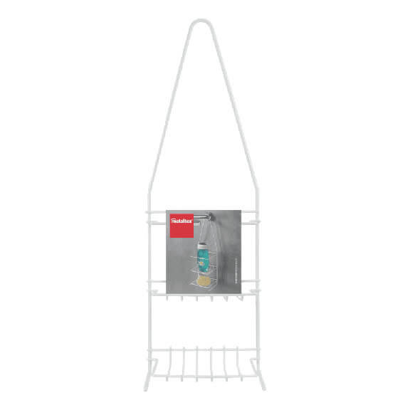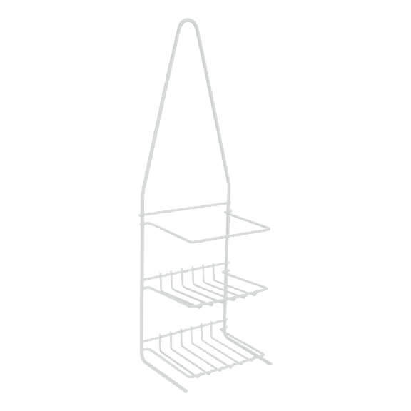 Pratica mensola a 2 ripiani in filo di ferro rivestito in plastica bianca (LDPE) con bordi alti anticaduta oggetti. Comodo nella doccia per sistemare i prodotti di uso quotidiano. Il fissaggio a muro può essere con chiodi, tasselli o sulle mattonelle con ventose (non incluse) o molto più semplicemente agganciato sul soffione della doccia.